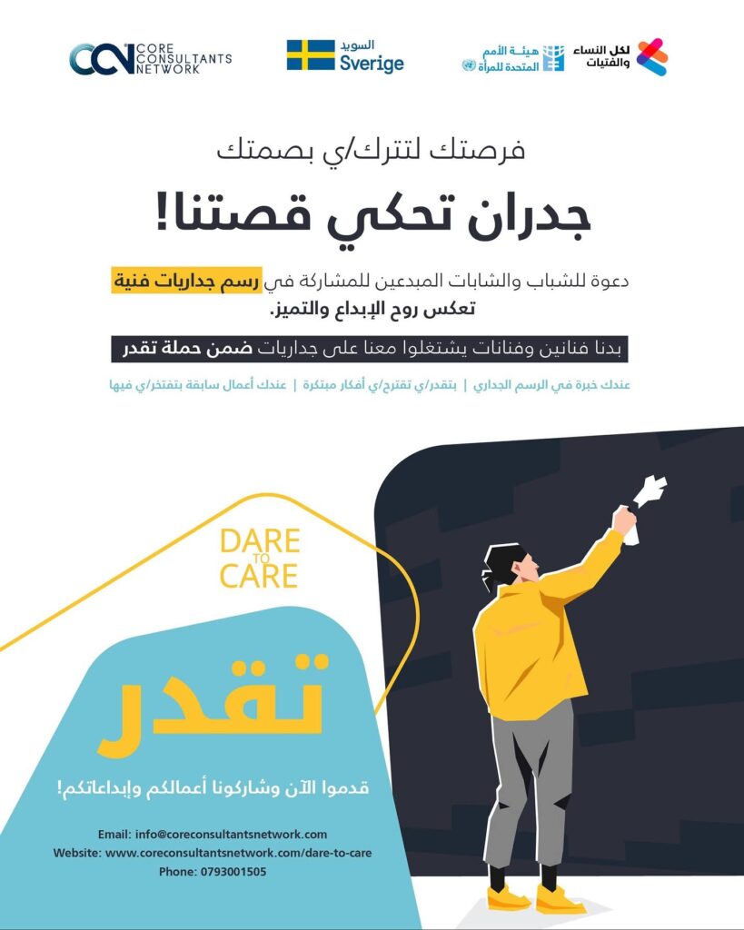 Five murals will be painted across different Jordanian cities – two in 2025 and three in 2026. Each mural is designed collaboratively with young artists and local communities through workshops that explore visual symbolism, storytelling, and positive representations of care. These public artworks transform everyday streets into messages of shared responsibility, equality in effort, and the dignity of caregiving.